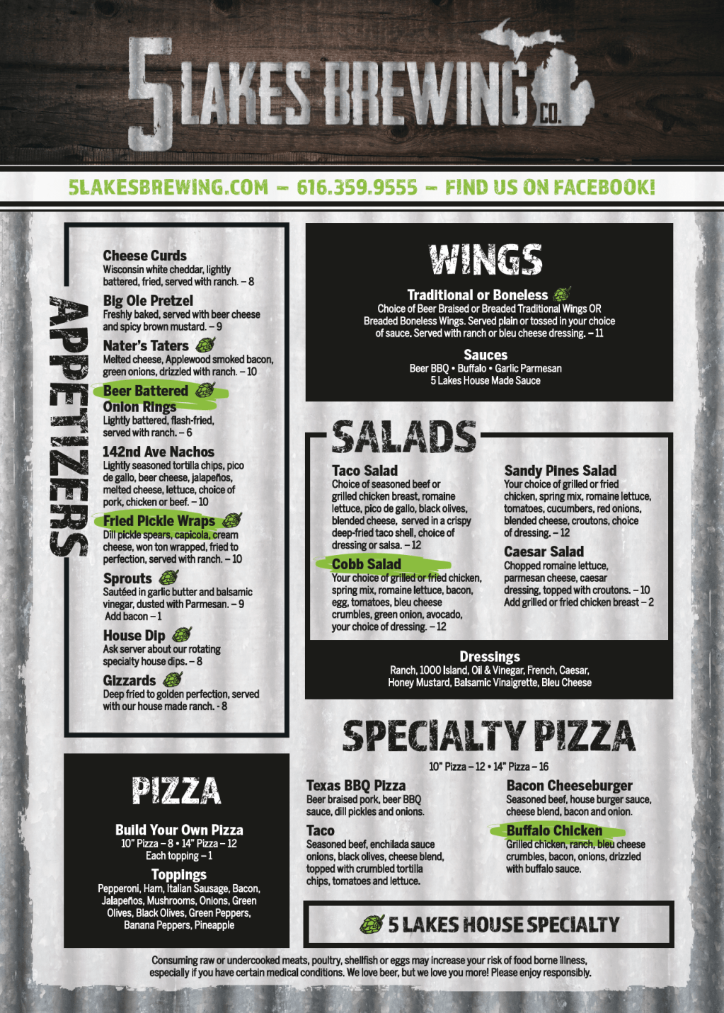 Located in Dorr, MI, 5 Lakes Brewing Co. specializes in brewing a wide variety of beers, distilling and infusing their own vodka, and offers a full menu.