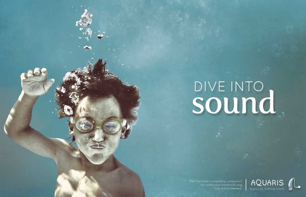 Aquaris is an innovative hearing aid manufactured by Siemens. The campaign focuses on Aquaris being the first fully waterproof hearing aid. The mobile app pairs with Aquaris’ bluetooth capabilities.